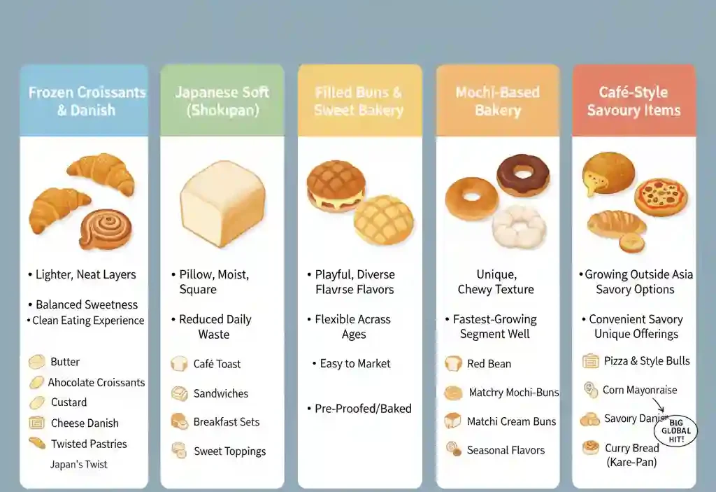 Japan’s frozen bakery segment is not one thing — it is a mix of traditional, Western-inspired, and uniquely Japanese items.